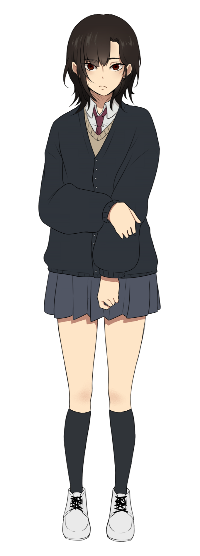 Akamatsu is a rather blunt and straight-forward girl, not caring to mince words when it comes to her own thoughts and opinions - sometimes to a fault. She finds this helps with communicating with her friends and classmates since she's often described as 'unreadable', which bothers her very much.She is, however, incredibly kind, snarky and quick to rile up if someone pays especially close to her tendencies, leading her to either shy away or over explain herself.Due to an accident at a young age that resulted in the loss of her father, Akamatsu has formed a phobia of storms; heavy rain and thunder.